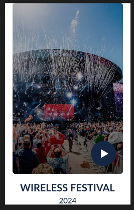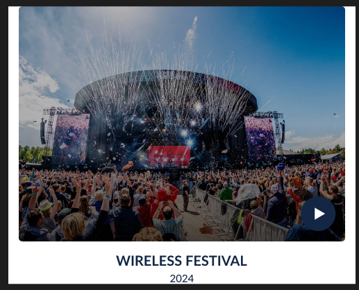 This desktop prototype features a image of the festival which is a thumbnail for a playable video the users of the site will be able to click play on and experience, this also features a title with a year date underneath which is centred underneath the image.