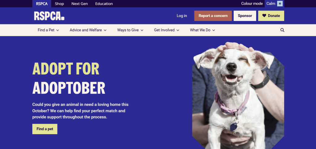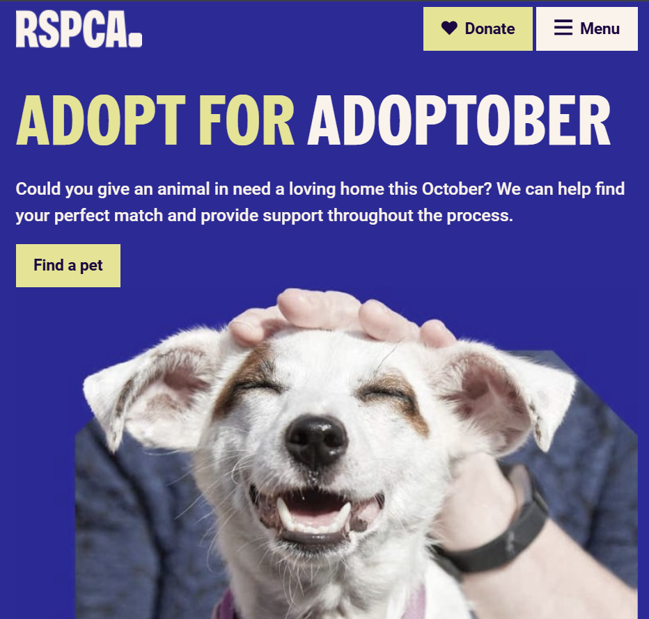 The website I’ve decided to analyse is the RSPCA website. Founded in 1824, the RSPCA is a UK charity focused on animal rescue and protection. They rescue and rehome abused animals. Funded mostly by donations, they run shelters, clinics, and outreach programs across the country.