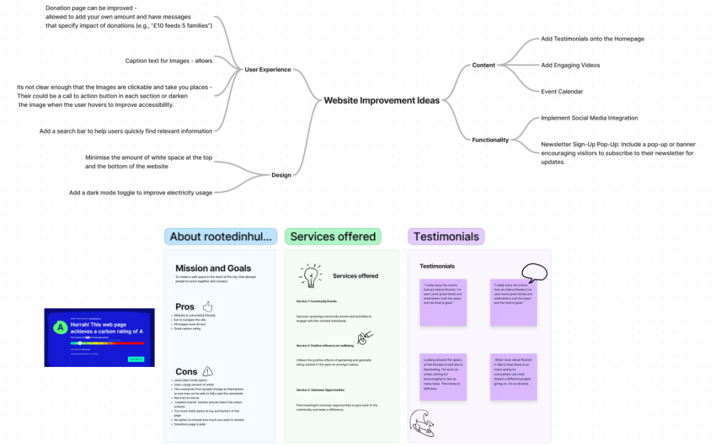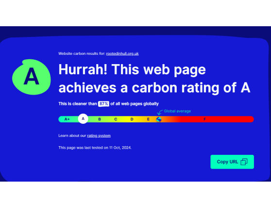 In our first group activity, I worked with Ryan and Jess to assess the sustainability of the Rooted In Hull website. We each dedicated time to analyse the site whilst focusing on its environmental impact. My role involved analysing its carbon emissions using “https://www.websitecarbon.com/,” which estimates a websites carbon footprint. This was interesting to see as it revealed how digital platforms can influence sustainability and showed how we can design websites to be more eco-friendly. I found it interesting how small design decisions can significantly reduce energy consumption.